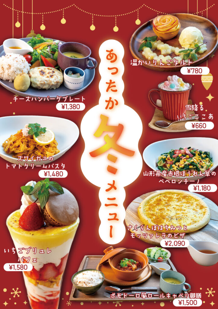 冬の寒い日に食べたくなる温かいカフェレストランメニューを期間限定でご提供いたします。